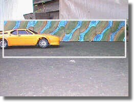 | The panels were arranged (leaning on a piece of wood), and a model car placed in front. It was then photographed with a digital camera, and this is the image: |